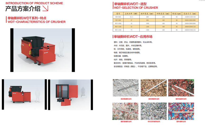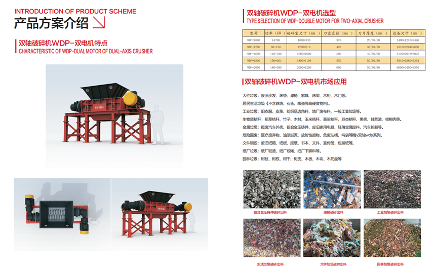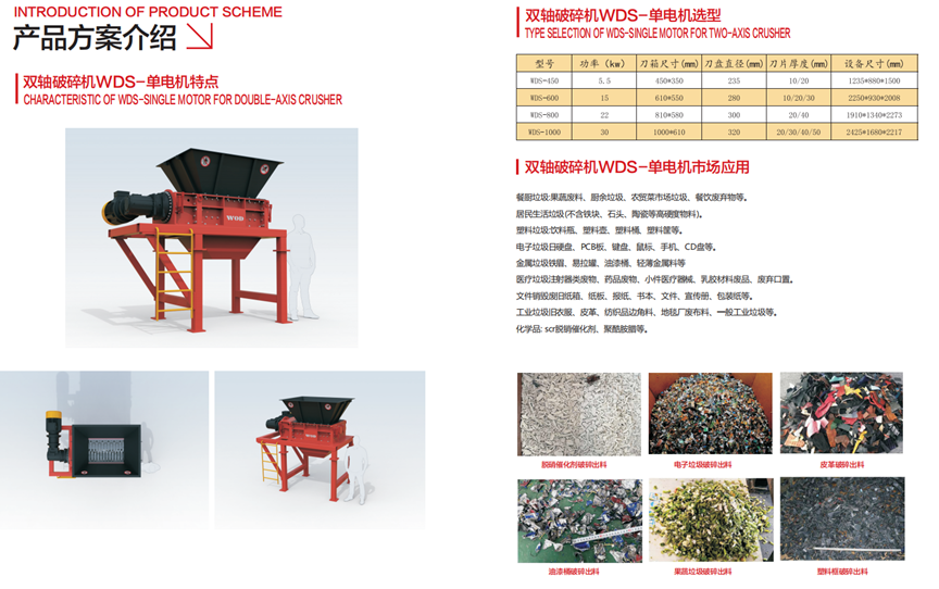 沃德機械以單軸、雙軸、四軸撕碎機等設(shè)備為主,主要應(yīng)用在大件垃圾破碎、一般工業(yè)垃圾破碎、紙廠絞繩破碎、生活垃圾破碎、廢舊汽車外殼破碎、餐廚垃圾破碎等眾多固廢破碎領(lǐng)域,并提供整線解決方案。