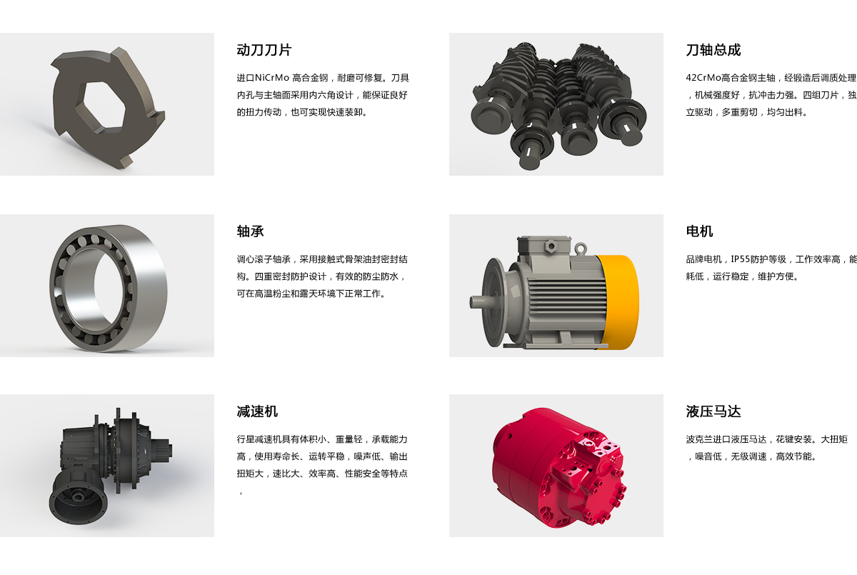 ? ? ? ??與雙軸撕碎機(jī)相比更容易進(jìn)入撕碎,效率高;?適合框狀物件,不需要加輔助壓料機(jī)構(gòu),高位刀片有對(duì)低位刀片有自我清潔功能;物料大小可根據(jù)篩網(wǎng)孔徑進(jìn)行調(diào)節(jié)。